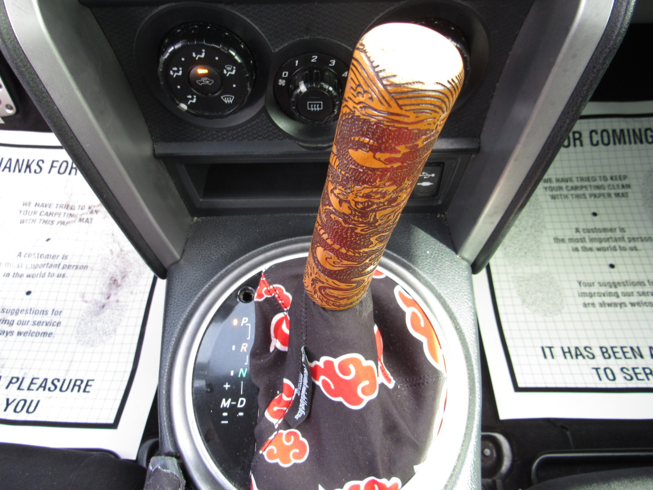 • Leather/Aluminum Gear Shifter Material