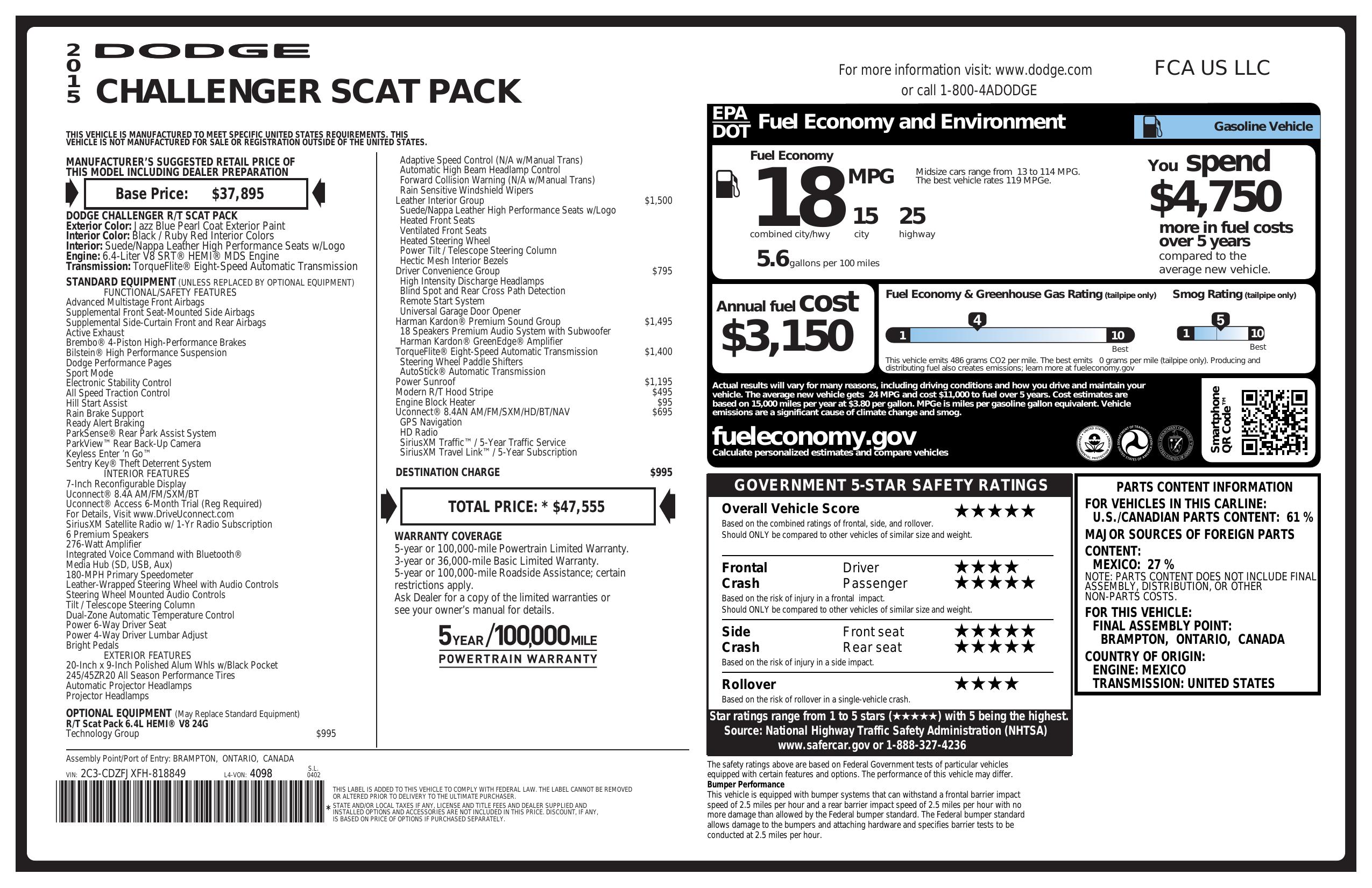 - ENGINE: 6.4L V8 SRT HEMI MDS