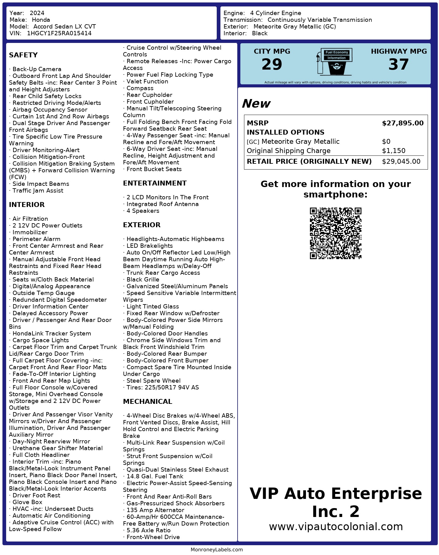 Message: Thought you might be interested in this 2024 Honda Accord Sedan.
